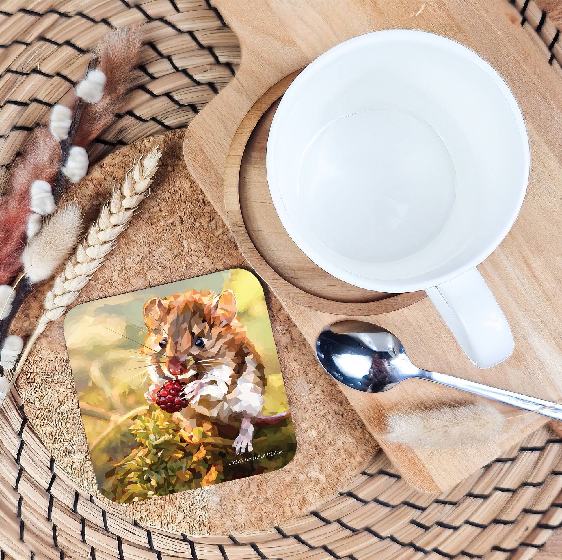 Protect your tables from unwanted marks and spills with this stunning British field mouse illustration coaster.