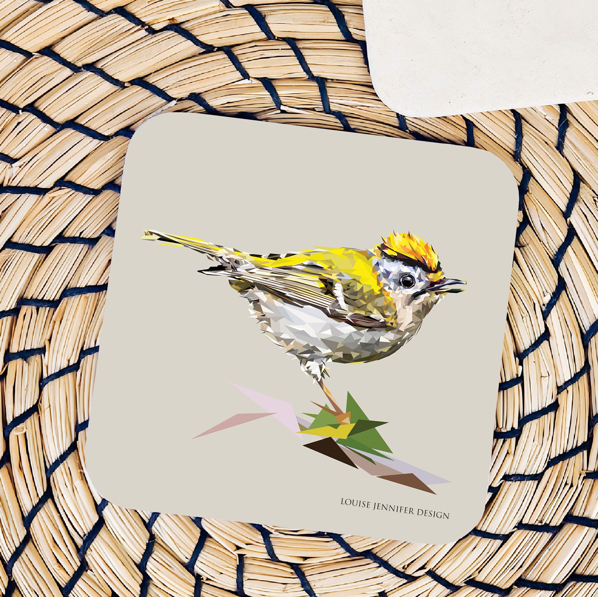Goldcrest drinks coaster | Geometric illustration | Garden birds