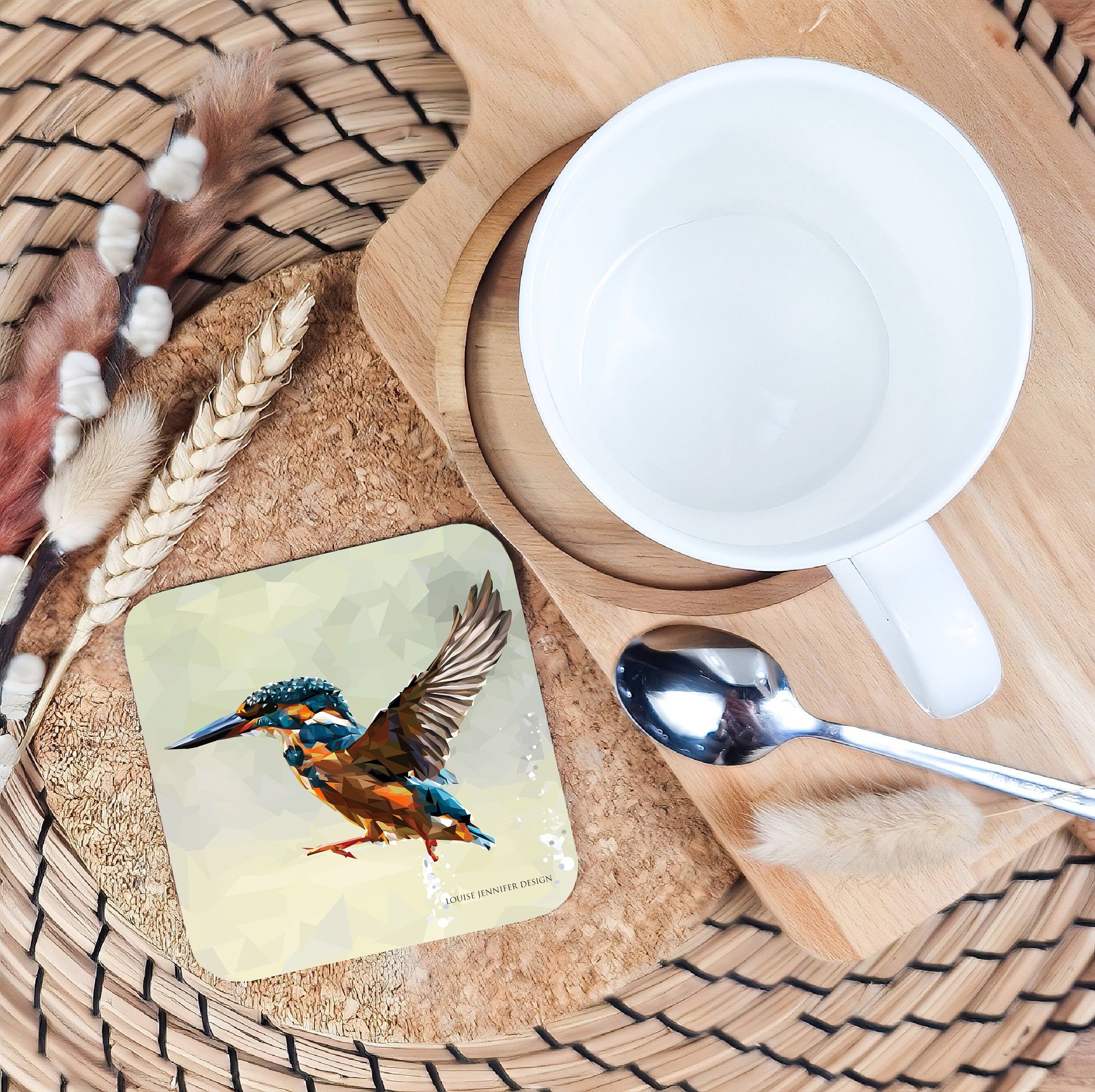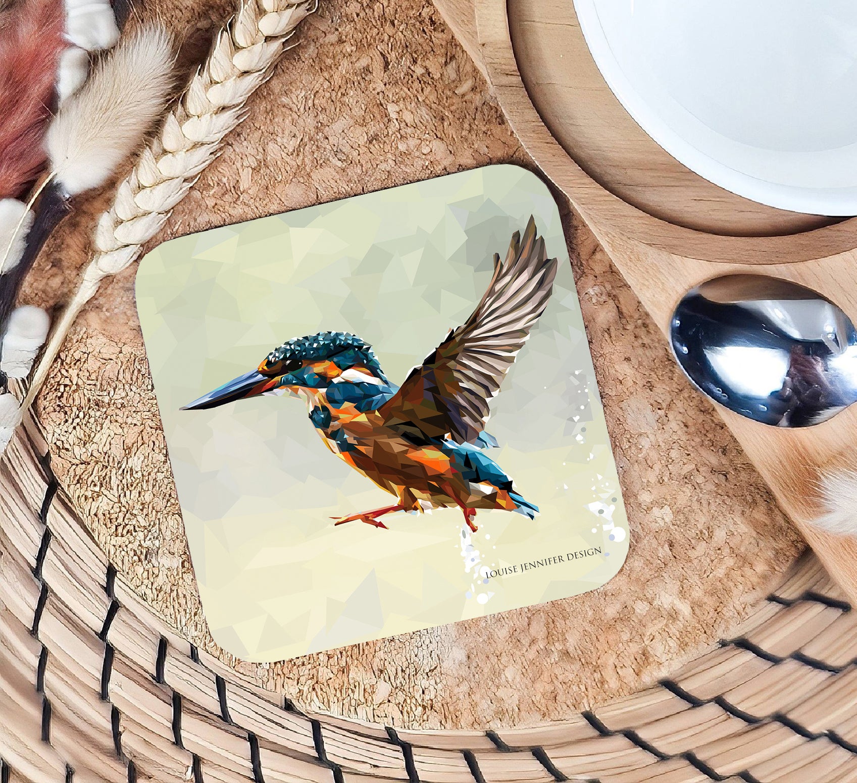 Kingfisher drinks coaster | Geometric illustration | British wild birds