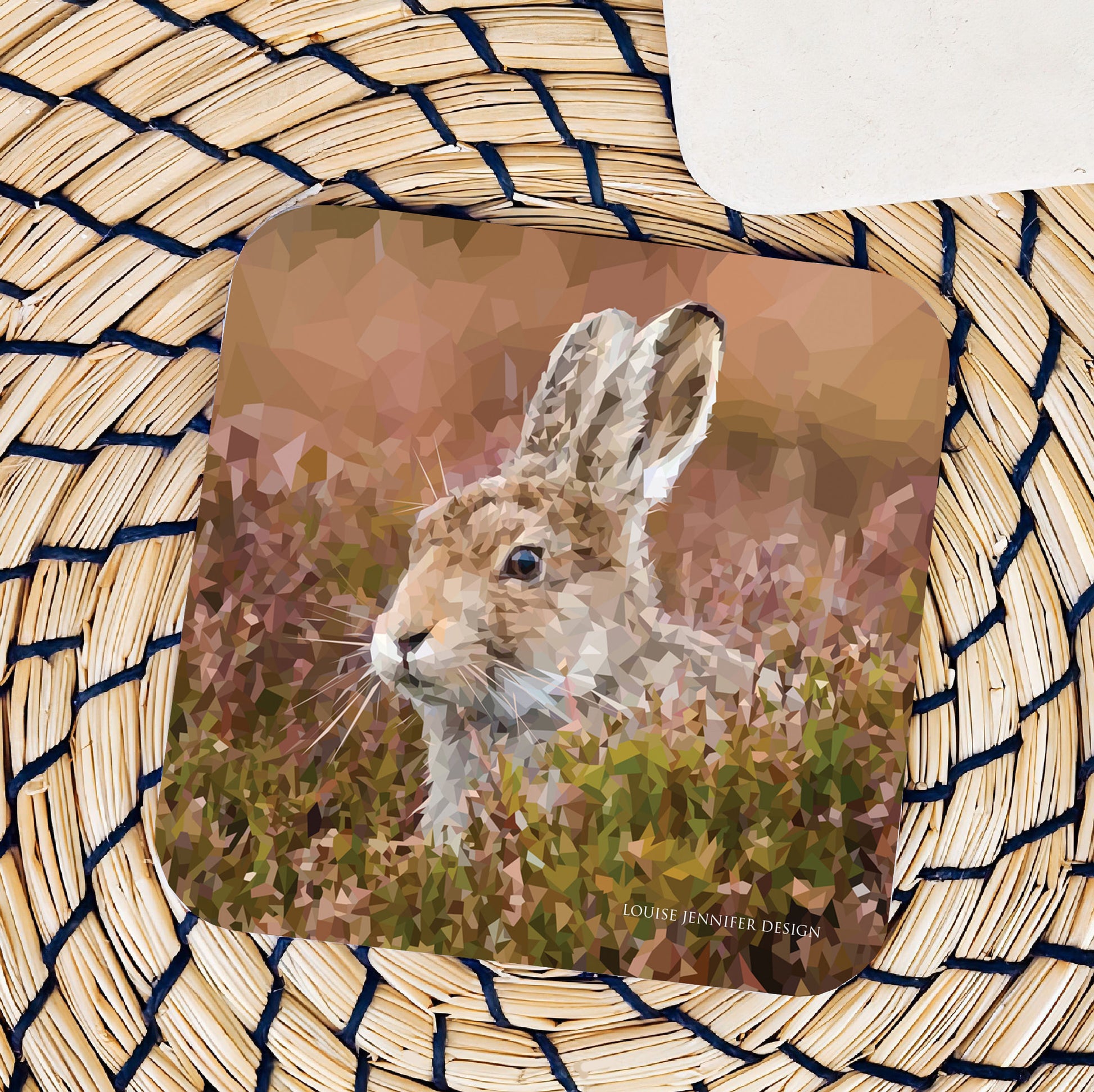 Mountain hare drinks coaster | Geometric illustration | Woodland animals