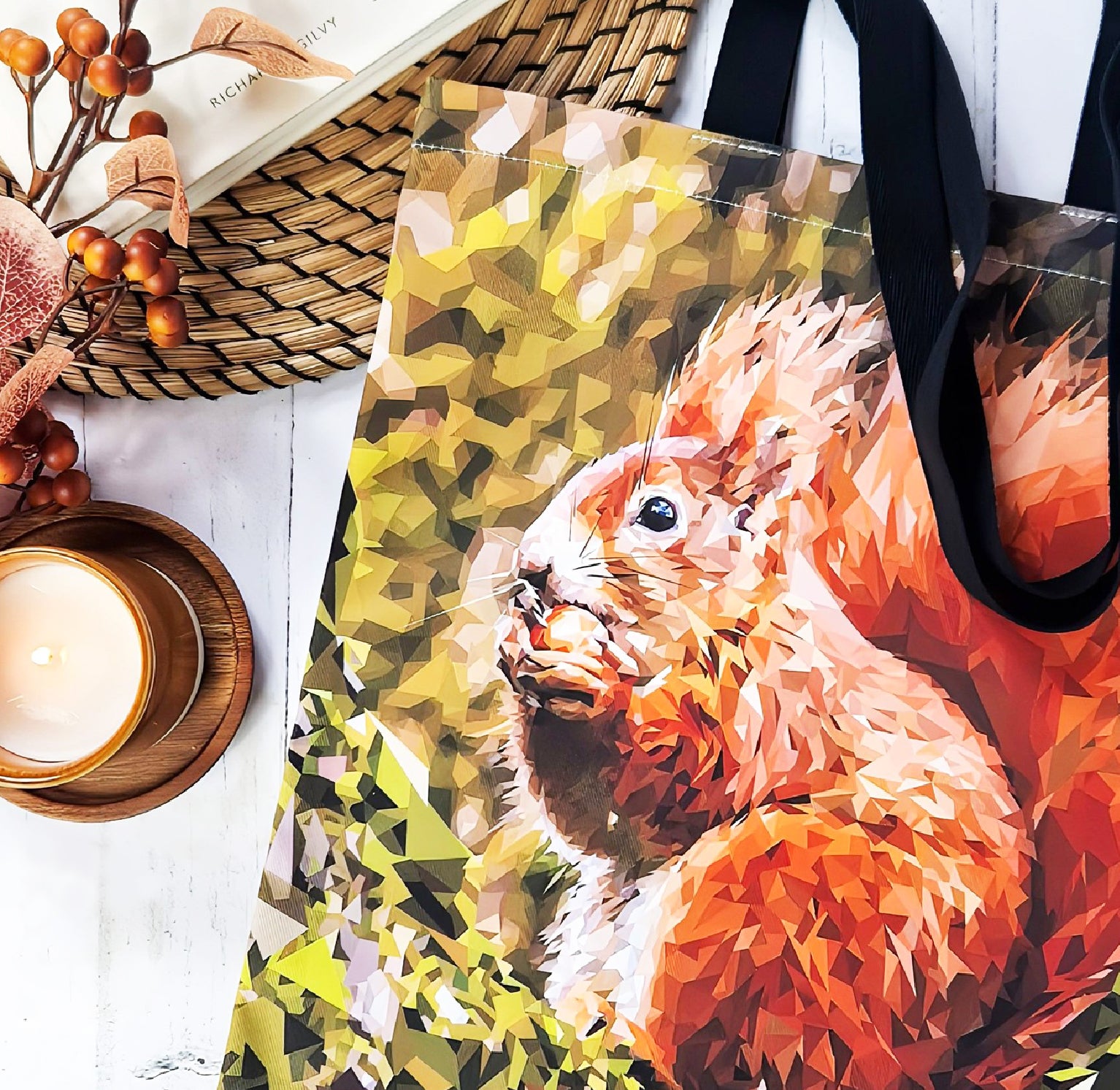 This listing is for a beautiful red squirrel tote bag. The bag is printed on 100% premium heavyweight panama fabric that is white in colour. Each bag comes with extra long black cotton handles and the design features on both sides. The design is digitally printed which allows the bright vivid colours to really pop!