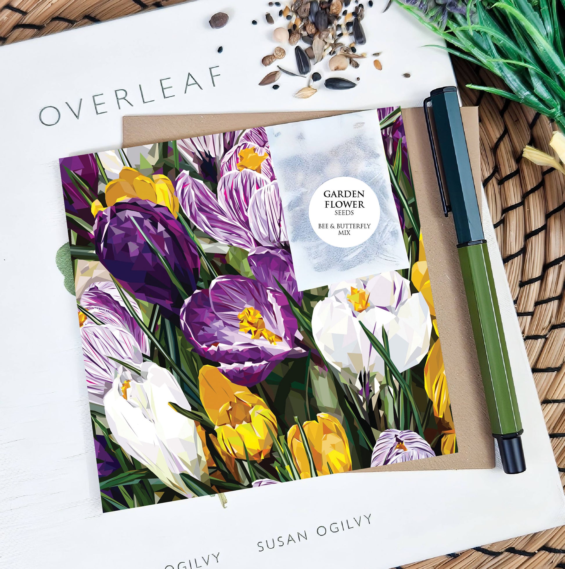 Crocus flowers illustration | Flower seed greeting card | Art card